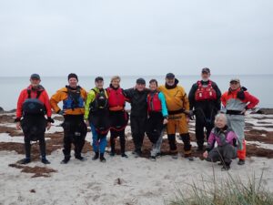 10 friske deltager var mødt op og klar til en hyggelig juletur med kajakkerne på Præstø Fjord.